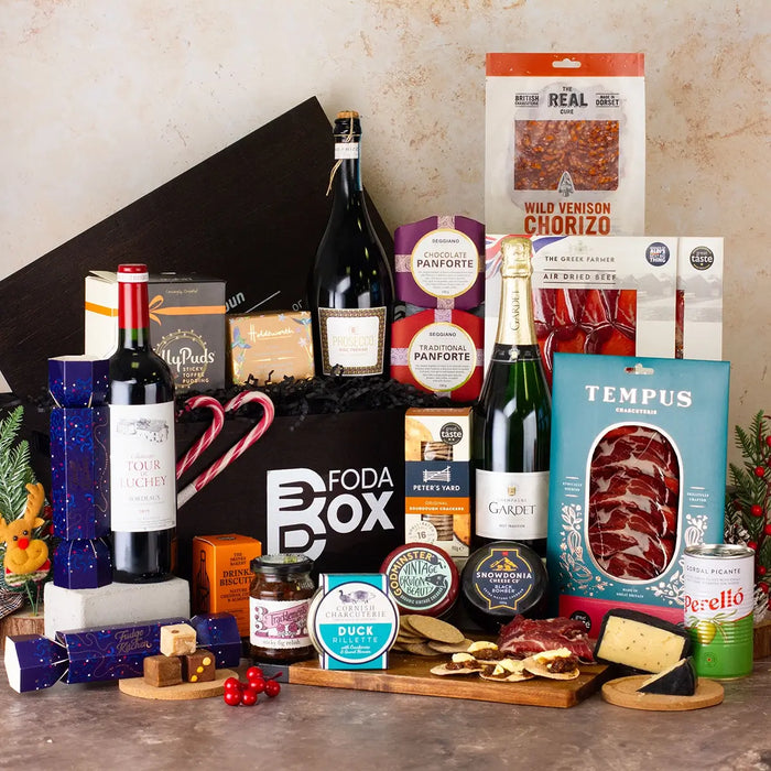 • Handpicked selection of fine wines and artisan festive treats for a luxurious celebration • Perfect harmony of sweet and savoury flavours to capture the spirit of Christmas • Beautifully presented in elegant, eco-friendly packaging for a premium festive touch • Ideal for gifting, family gatherings, or adding sparkle to any holiday celebration
