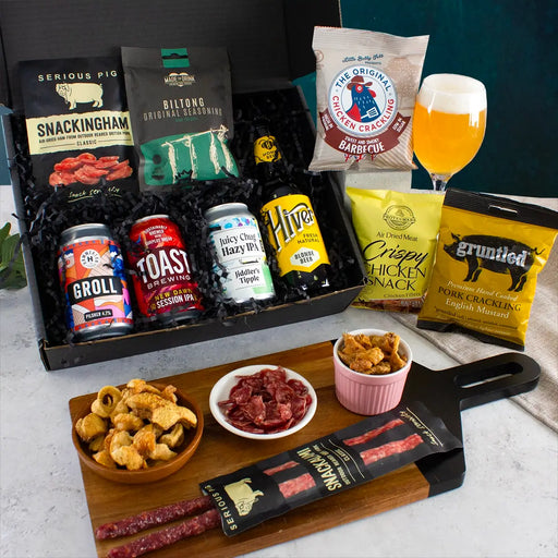 Craft Beer & Meat Snacks Gift Box – The Ultimate Pub Experience at Home Bring the warmth of a great British pub night straight to your home wit...