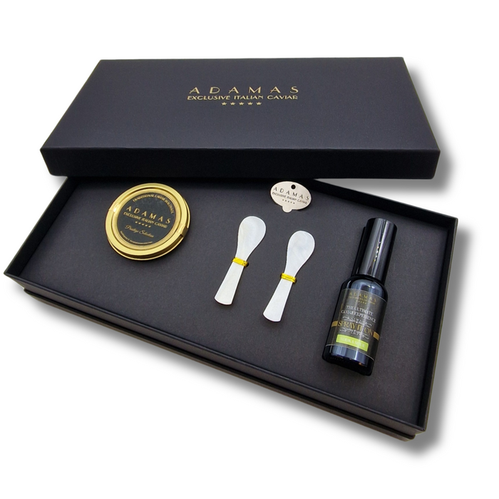 The rapid infusion of the high-quality alcohol content is designed to amplify and complement the rich, nuanced flavours of Adamas caviar. This unique fusion of ingredients creates new organoleptic sensations, taking your palate on a tantalising voyage. It's not just caviar; it's THE ULTIMATE CAVIAR EXPERIENCE.