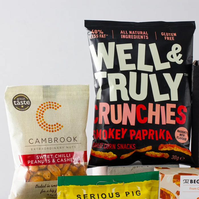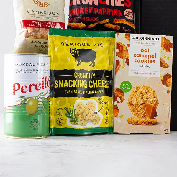 Perfect pairings: Includes crispbreads, smoky almonds, and spiced olives to complement the rich flavours.