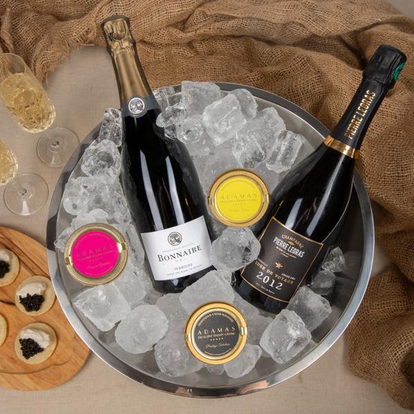 The chalky characteristic of Bonnaire Terroirs Grand Cru Blanc de Blancs prepares the palate beautifully for our creamy Adamas Award-Winning caviar. The mineral notes of the champagne contrast and complement the pure, delicate flavour of the caviar, enhancing its wonderfully creamy texture and unique aromatic finale. Together, they create an unparalleled gastronomic experience, a true delight for the taste buds.