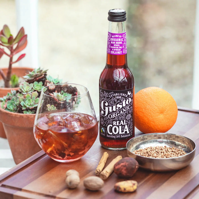 Spring water, agave nectar*, caramel*, lemon juice* (from concentrate) natural flavouring, cola nut extract, vanilla extract*, essential oils of: lemon*, orange*, lime*, neroli*, cinnamon*, coriander* *DENOTES CERTIFIED ORGANIC