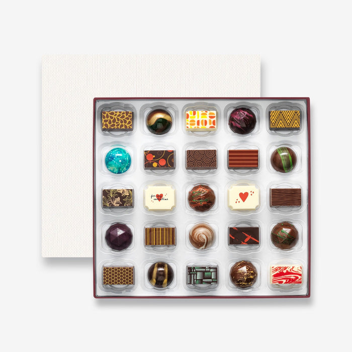 Celebrate love this Valentine's Day with our Luxe Valentine's Chocolate Gift Box, a perfect blend of elegance and indulgence. Each box contains a carefully curated selection of 25 artisan chocolates, ensuring a delightful experience for your loved one.