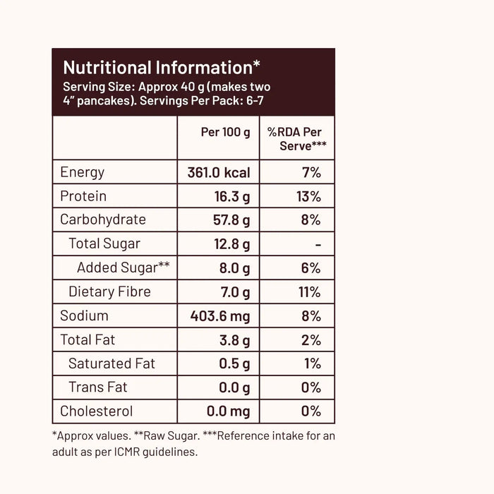 Multigrain Blend (Sorghum, Oats, Foxtail Millet) (67%), Mung Bean Protein, Pea Protein (12.2%), Unrefined Sugar (6%), Blueberries, Cranberries, Banana Powder, Nature Identical Flavours, Baking Powder, Baking Soda, Citric Acid, Beet Powder