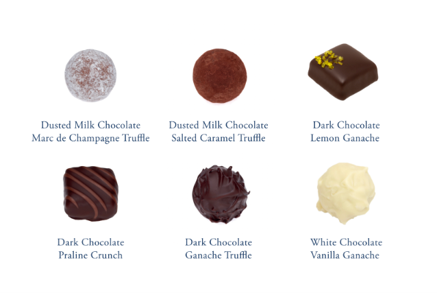 This exquisitely designed box contains 6 quintessentially British Ganaches, Truffles and Pralines.