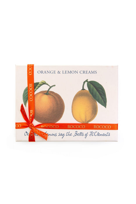 Dark chocolate contains 65% min cocoa solids. Milk chocolate contains 27% min cocoa solids, 20% min milk solids. Cocoa mass, sugar, cocoa butter, whole milk powder, glucose syrup, water, butter (milk), condensed milk, orange oil, lemon oil, emulsifier: soya lecithin, natural vanilla extract.