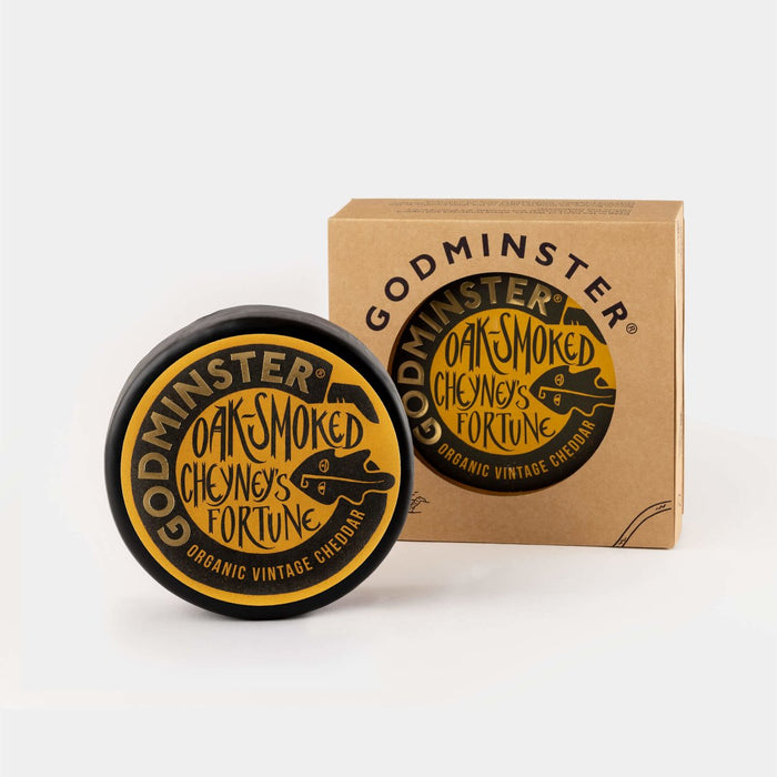 Produced using cows milk from Godminster's Dairy Herd, this Oak Smoked Cheddar by Godminster has been wood smoked by just the right amount to balance the oakiness and the creaminess of the cheese.
