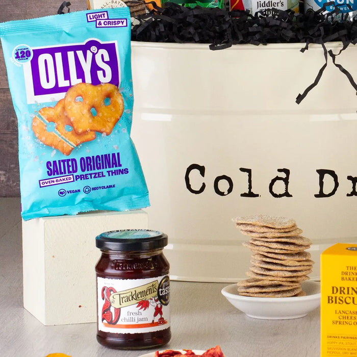 Vocation Hop, Skip & Juice Hazy Pale Ale Can 5.7% 330ml Toast Grassroots Pale Ale Can 330ml Hiver Honey Beer Blonde Ale Bottle 330ml Fabal Lager 4% ABV Bottle 330ml Hammerton Brewery Groll Pilsner 4.7% 330ml Gun Brewery Scaramanga Extra Pale 3.9% 330ml Can Mani Kalamata Olives in Oil 280g Cambrooks Almonds – Hickory Smoke Seasoned Jar 95g Savoursmiths Ltd - Bubbly and Serrano Chilli Flavour Potato Crisps - 40g The Drinks Bakery Mature Cheddar, Chilli & Almond Biscuits 36g Howdah Masala Dippers Snacks 130g Raging Bull Sweet Hot Beef Jerky 28g Serious Pig Spicy Snackalami 30g Serious Pig Crunchy Snacking Cheese 24g Harbour Housewares Vintage Style Metal Party Ice / Drinks Bucket - Steel
