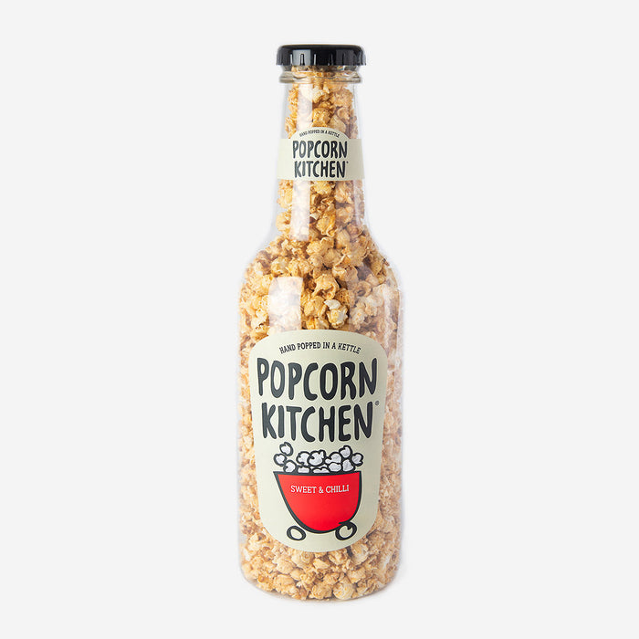 Our bestselling Giant Moneybox bottle filled with our hand-popped sweet & chilli gourmet popcorn. This recipe starts sweet with an unbeatable crunch and then the warming chilli flavour gradually kicks in. Always a crowd-pleaser when we are out sampling the range.
