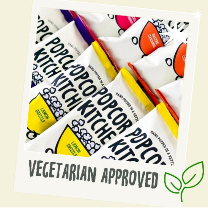 Our entire range is made using wholegrain, gourmet ‘mushroom’ corn which made its name by effortlessly popping into light, fluffy spheres with an unbeatable crunch to provide the perfect, well-rounded setting for all manner of indulgent flavours to shine. By opting out of ‘everyday’ butterfly corn, Popcorn Kitchen significantly reduces the amount of small popcorn shrapnel one might expect to find lurking at the bottom of your bag or bottle.